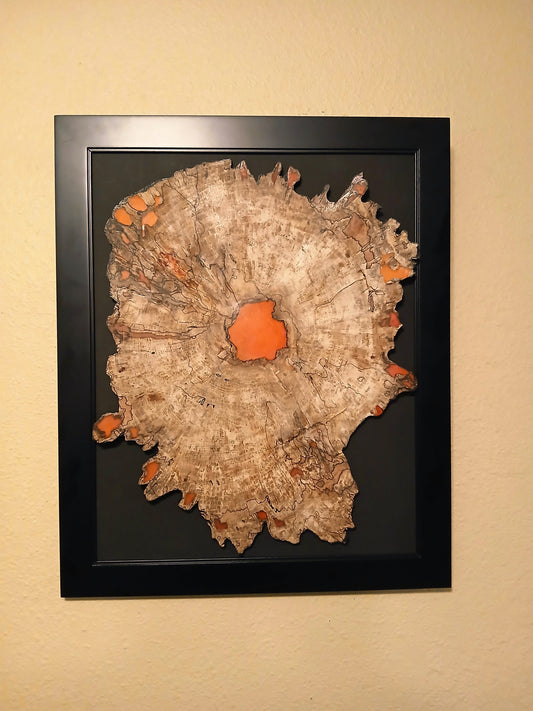 These signature pieces are works of art like no other. Combining translucent spalted hardwood end-grain veneers with multiple shades of color shifting resin and backlit with RGB LED lights.